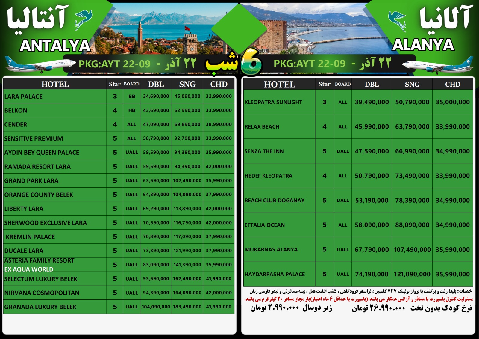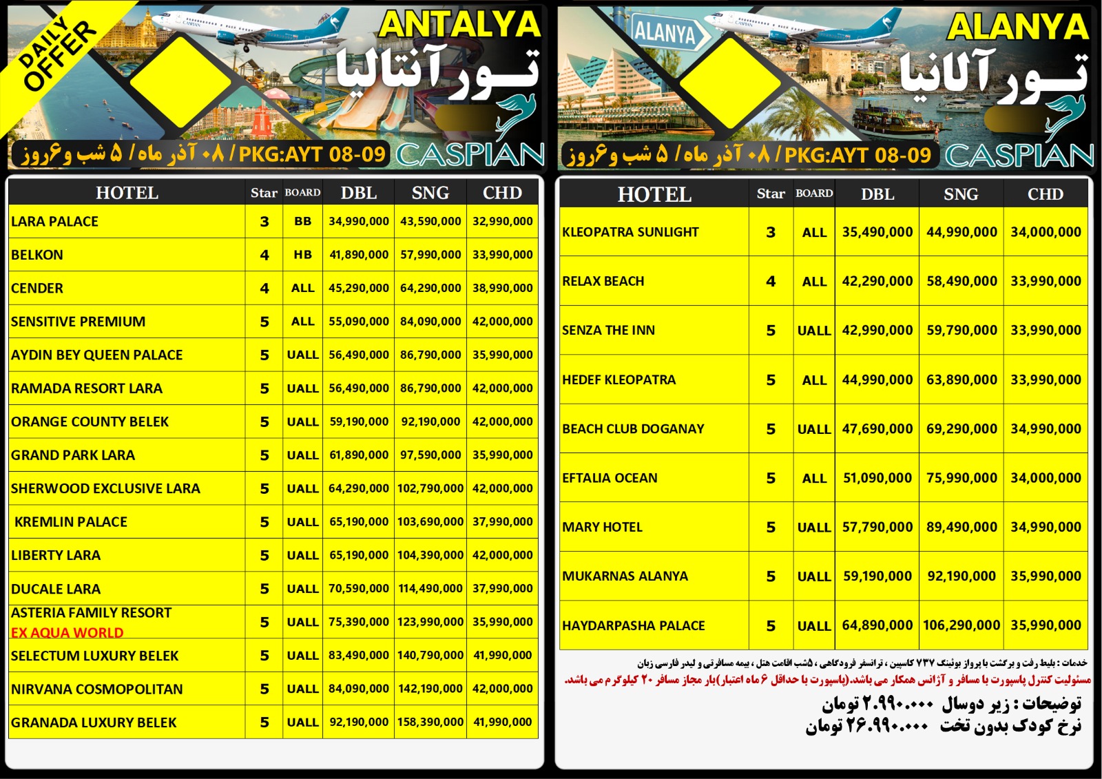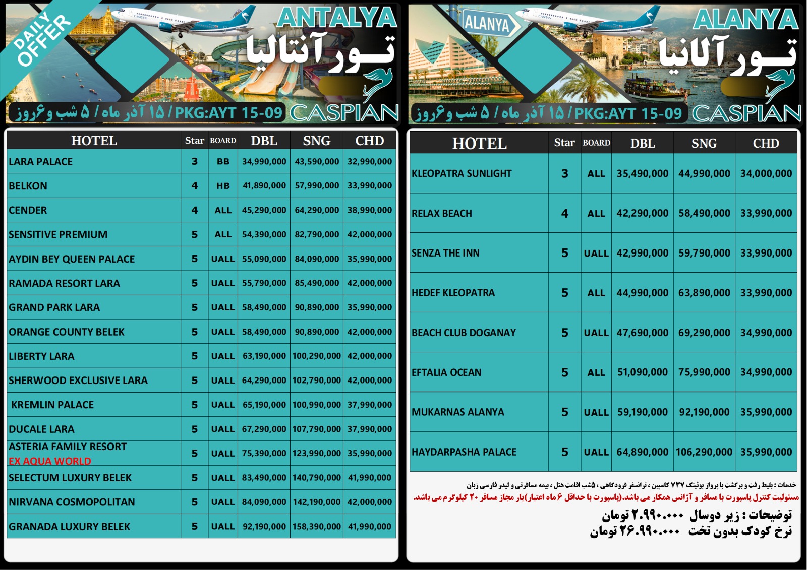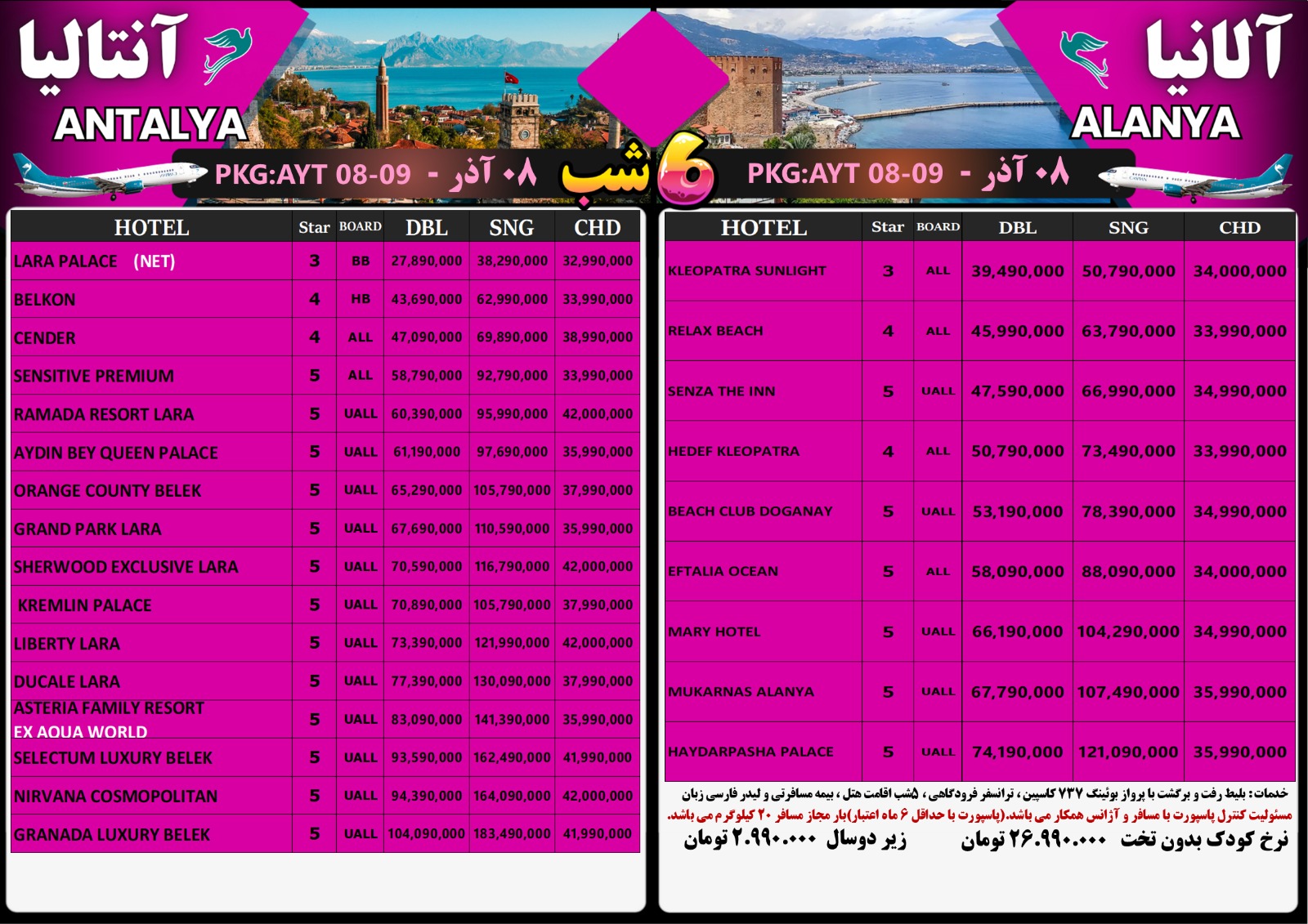 تجربه‌ای بی‌نظیر از سفری لوکس که تمامی خواسته‌های شما را برآورده می‌کند؛ اقامت در مجلل‌ترین هتل‌ها، برنامه‌ریزی حرفه‌ای برای گشت‌های خاص و خاطره‌انگیز، خدماتی منحصر‌به‌فرد و متفاوت، همگی با بهترین قیمت‌ها در انتظار شماست. سفری برنامه‌ریزی‌شده برای خلق لحظاتی ناب و فراموش‌نشدنی!